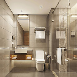 SALLY Prefabricated bathroom with steel frame and tile finishItem Code:B1527-1Inner Size:2700 L*1500 W* 2200 H mmFloor material: Glass fiber reinforced cement,tile finish.With waterproof material insi...