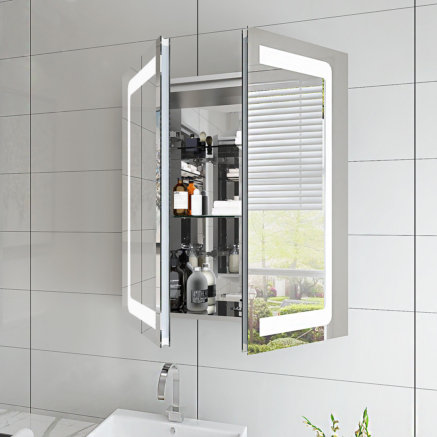| Features | Stainless Steel LED Mirror Cabinet 1.Double mirror 2.infrared Sensor switch,anti-fog 3.2 pcs glass shelves 4.Soft hinge with 165 degree |